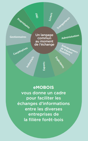 Les outils informatiques se développent de plus en plus dans les entreprises de la filière Forêt-Bois. Cette informatisation s’accompagne d’un besoin accru de données numériques. Dans ce contexte, eMOBOIS propose un cadre pour faciliter la mise en relation des systèmes informatiques. L’élément fondateur du projet est la standardisation des données et des échanges de données. L’objectif d’eMOBOIS est donc de faciliter les échanges d’information entre deux entreprises impliquées dans le processus d’approvisionnement des bois. L’utilisation au moment de l’échange d’un langage commun est proposée pour éviter de multiplier le développement d’interfaces informatiques. eMOBOIS se concentre sur la transaction de données d’une entreprise vers une autre. Il n’y a pas d’ingérence dans les choix informatiques des entreprises ni dans le traitement des données par les entreprises. La démarche est compatible avec la diversité des solutions informatiques rencontrée. Les avantages principaux sont un gain de temps considérable, une meilleure sécurité et fiabilité des échanges, une communication plus facile entre les acteurs, ainsi qu'une mise à jour en temps réel des stocks.